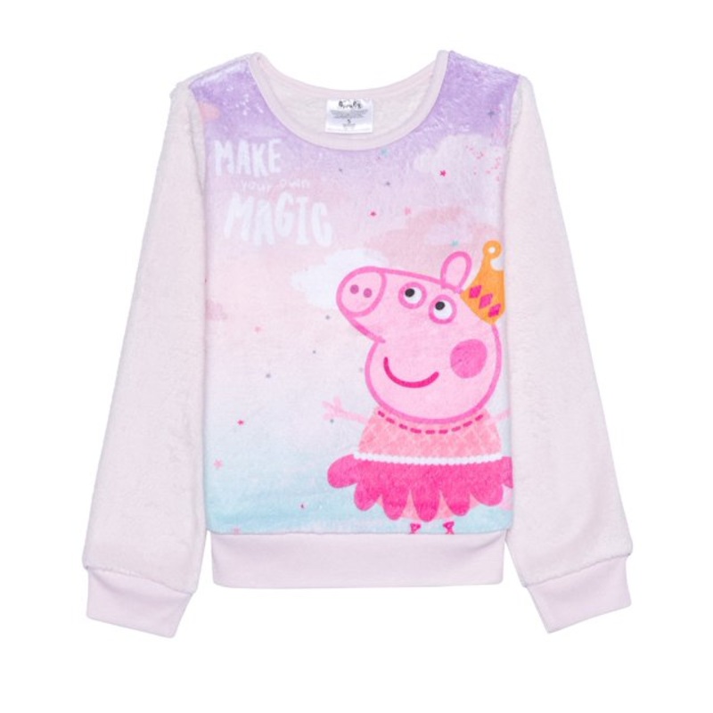 Peppa Pig Girl's Pink Sweatshirt This Peppa Pig Girl's Pink Sweatshirt brings comfort and fun to your little one's wardrobe. Made with soft fabric, it keeps kids cozy while featuring a beloved character that sparks joy and imagination. Perfect for everyday