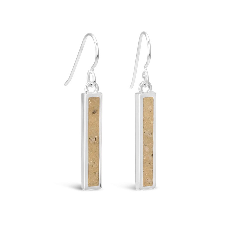 These cute earrings are made from .925 sterling silver and are showcased by a29mmlong by5mm widerectangular bar set with marble and other natural materials taken directly from the Singing Tower during a restoration project. The setting is hand-sanded and p