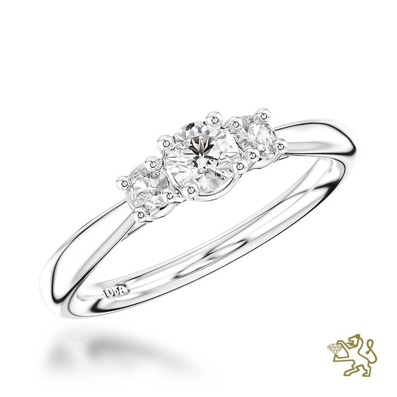 Platinum Three Stone Subtle curves in the galleries give this classic design that distinctive edge.The three diamonds often represent "past, present and future", making it a perfect engagement ring or gift for a loved one.Set in platinum using a mix of tra