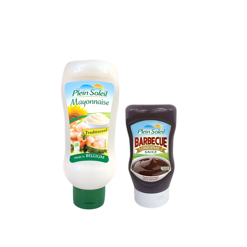 Plein Soleil Mayonnaise 450ml + Plein Soleil Barbecue 350g (Promo Price) Plein soleil offers the authentic Belgian mayonnaise experience in the comfort of your home. It is ideally used as a topping in sandwiches, hamburgers or directly on French fries. It