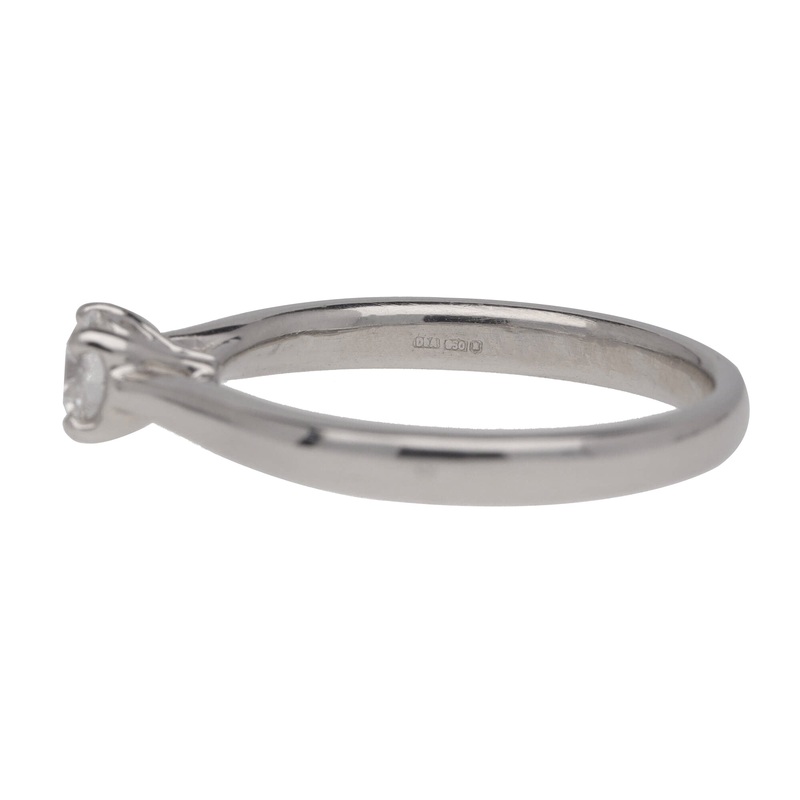 Classic 4 claw soltaire ring featuring a certificated D VS2 0.31ct diamond. Platunum. Size M.