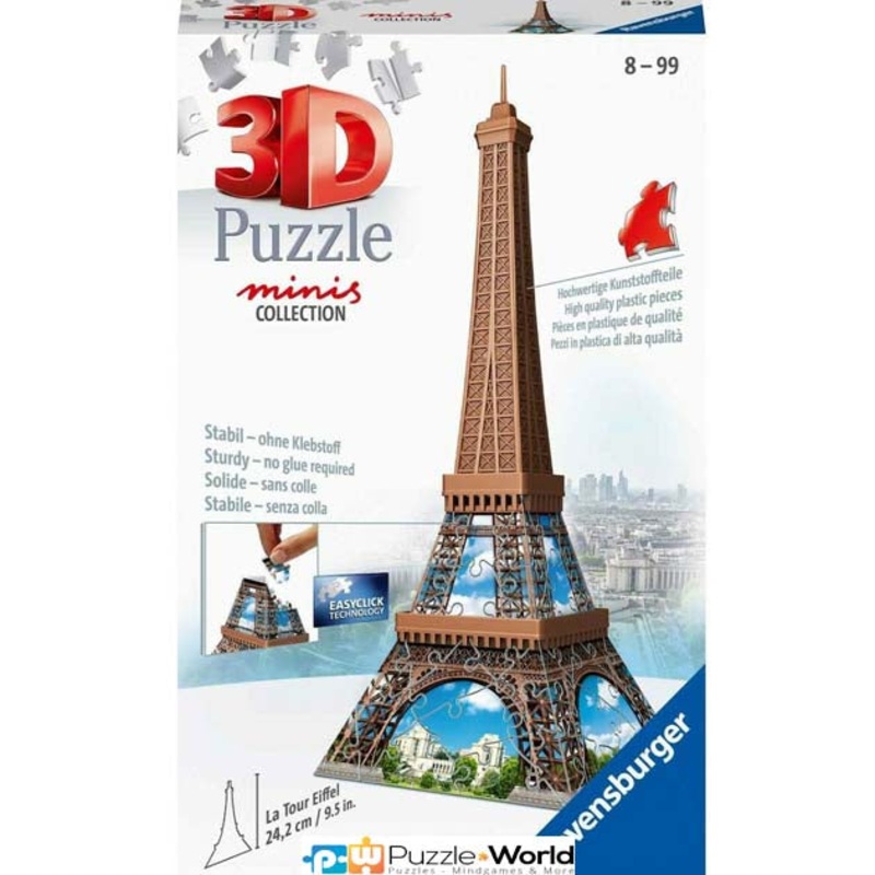 Ravensburger Eiffel Tower 54 Piece 3D Jigsaw Puzzle Ravensburger 3D Puzzle Eiffel Tower-Mini54 Pieces.Come with us on a third-dimensional adventure! With Ravensburger's 3D Puzzles, the most famous monuments are in your... hands!Withplastic clickablepieces