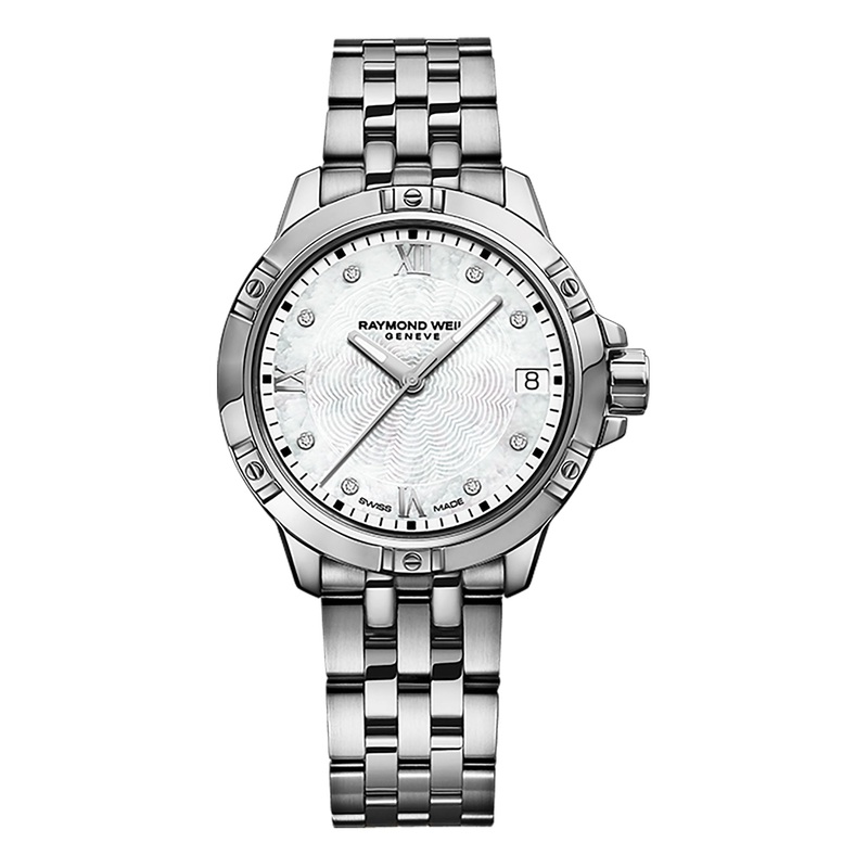 The tango collection embodies the passion that RAYMOND WEIL, the Swiss watchmaker, puts into achieving timepieces of both aesthetic sensuality of design and rhythmic perfection. With its refined and modern design, this contemporary collection appeals to both men and women. Featuring a quartz movement, the gents timepieces boast a sober and refined style while the ladies models are graced with mother of pearl and diamonds. Distinctive style with a balance of proportions, the tango watch has a distinguishing signature bezel featuring six decorative screws. Functionality marries with sensual design, making this a watch worn to suit any occasion.
