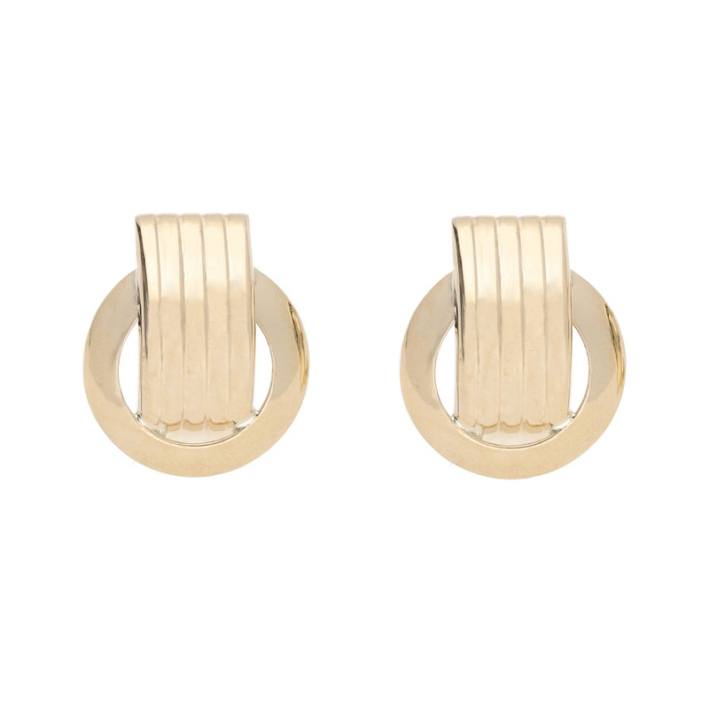 A stylish pair of statement stud earrings featuring a ribbed design, set in 9ct yellow gold.