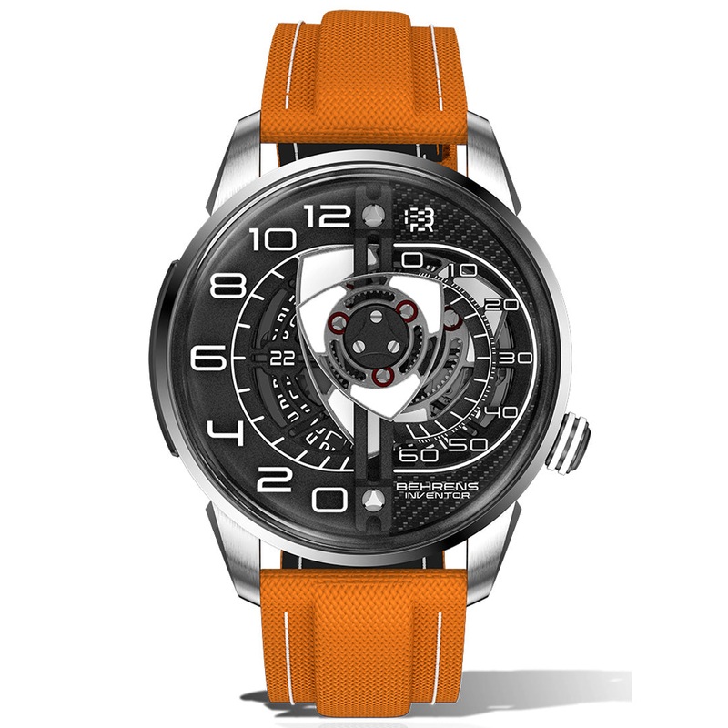 B022 ROTARY Series is our new creation to inspire and tribute to the legendary Rotary engine. From which we took the iconic engine as this project concept. From there we studied how this Rotary engine runs and took the motions of the engine rotors and turned them into display for time in Minutes & Hours. By mean of such we have made use of the twin rotors system and turned them into hours and minutes indicators while the unique Rotary engine rotor running track has also allow us to create a unique time display.