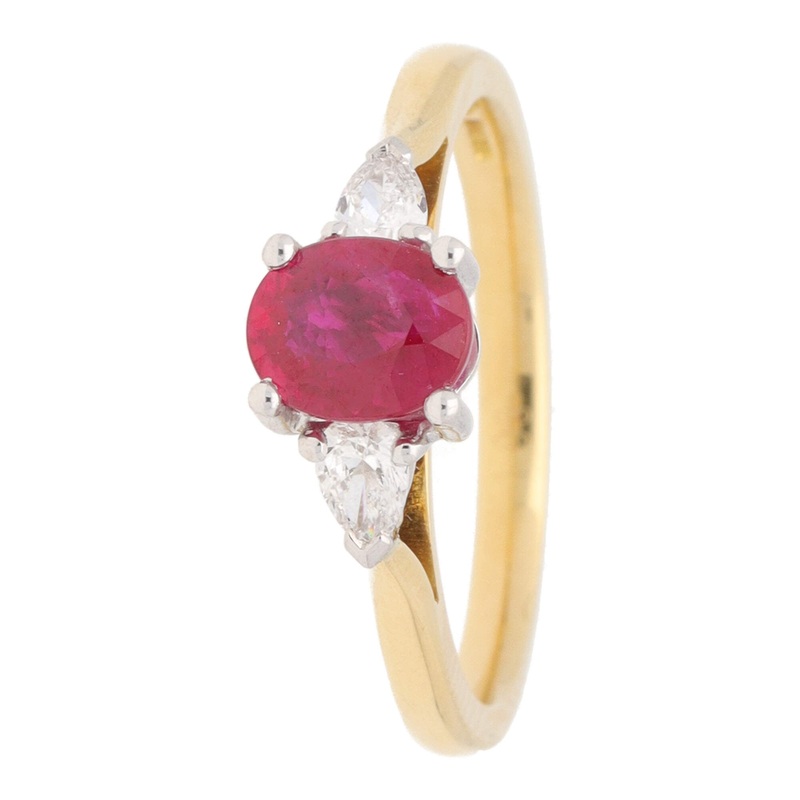 Ruby and Diamond 18ct Yellow Gold Three Stone Ring