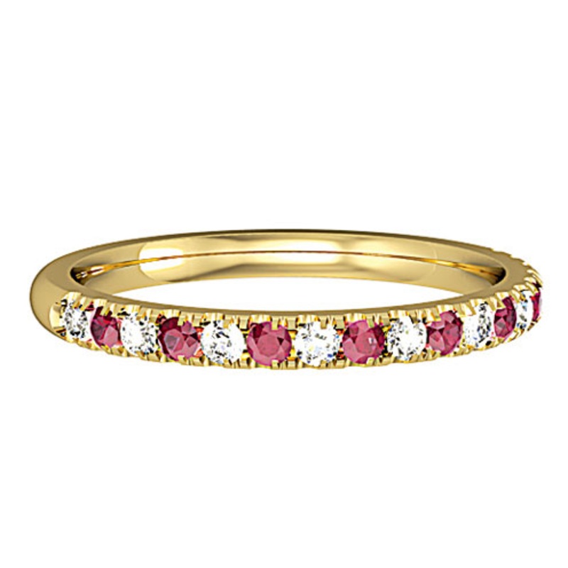 Ruby and Diamond Castle Set 18ct Yellow Gold Half Eternity Ring