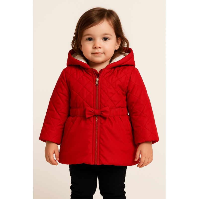 S.Olive Baby Girl's RedPuffer Jacket The red children's quilted jacket by s.Oliver is the perfect choice for everyday winter looks. It also features a hood to protect the child's head from the cold.