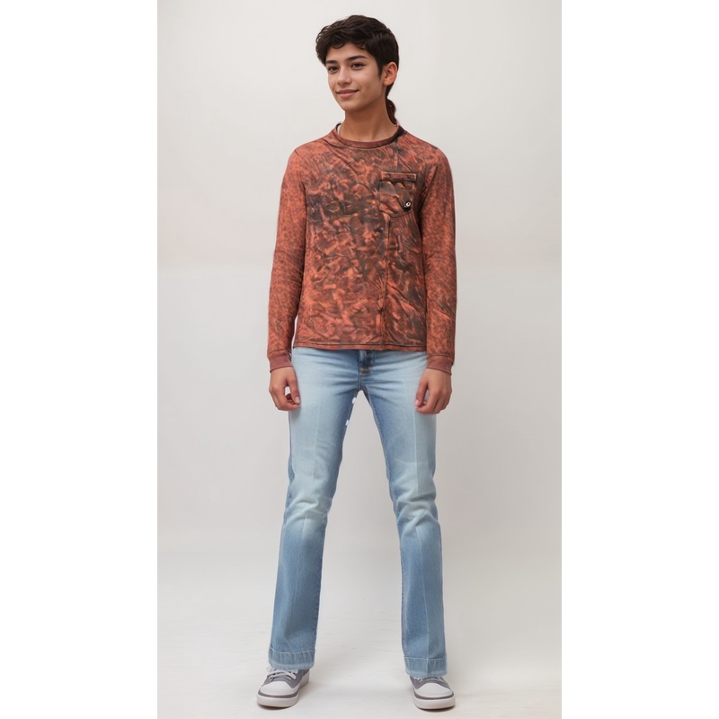 Boy’s Burgundy Long Sleeve blouse With a Paint Print on the Blouse