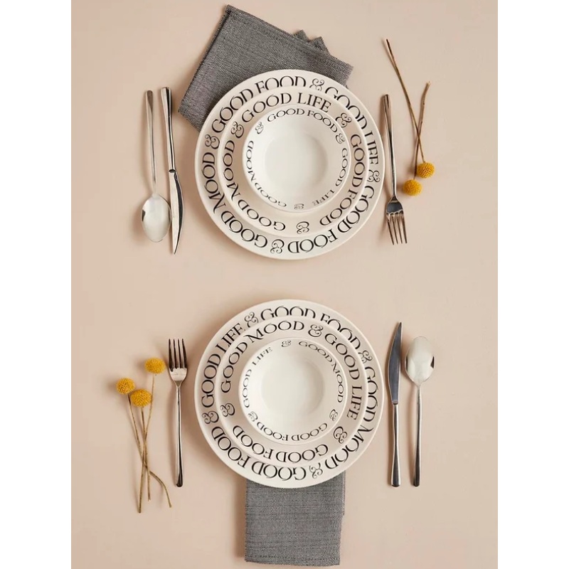 SD Home White Ceramic 6 Pieces Dinner Set for 2 Persons TR68 It is a dinner set consisting of motto detailed plates for 2 people.Our plates are ceramic and 100% Turkish made.Washing in the dishwasher on low setting or hand washing is recommended. Product f