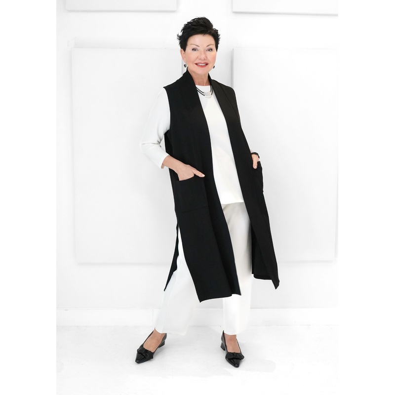The Scuba Lisa Vest is your go-to layering piece for effortless style and structure. Designed with an open front, long length, and side slits for ease of movement, it adds polish to any outfit. The doubled trim along the neckline and down the front gives it a clean, modern edge, while the smooth scuba fabric offers comfort and versatilityperfect over your favorite tops or tunics.