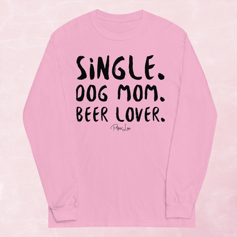 Single Dog Mom Beer Lover Graphic Long Sleeve Tee