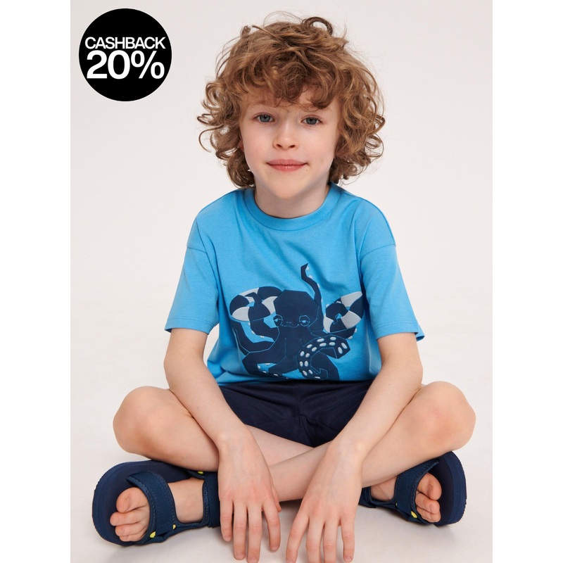 Sinsay Boy's Blue T-Shirt With Print Product description classic cut round neck short sleeves decorative print Composition and maintenance Material I: 100% COTTONMACHINE WASH AT MAX.TEMP. 30 C - MILD PROCESSDO NOT BLEACHDO NOT TUMBLE DRYIRON AT MAX. TEMP.
