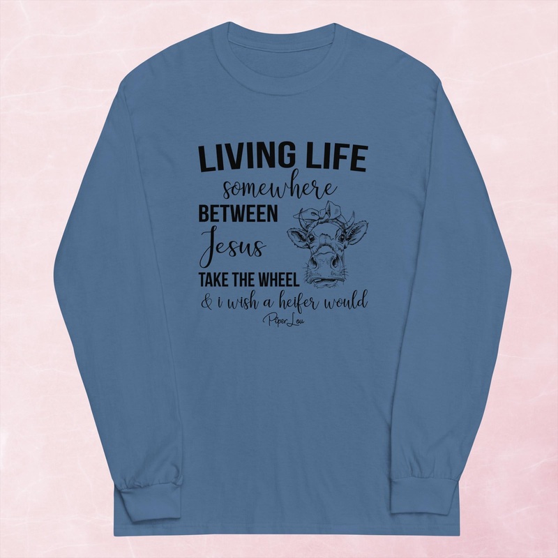Somewhere Between Jesus Take The Wheel Graphic Long Sleeve Tee
