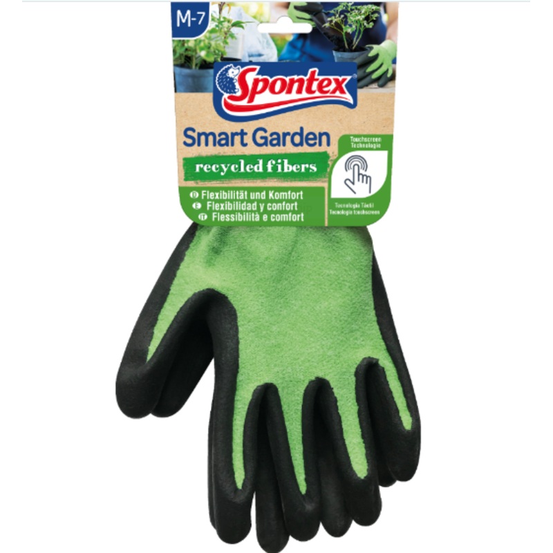 Spontex Black & Green Smart Garden Gloves Spontex Smart Garden are multifunctional gloves made of polyester with recycled fibres. The gloves are extremely flexible and provide excellent comfort during various gardening tasks. The nitrile coating ensures op
