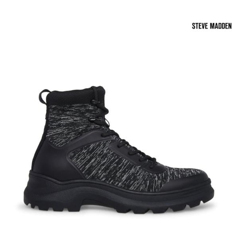 Steve Madden Men's Black Loton Ankle Sneakers The love child of a sneaker and a pair of boots. The comfort of a sneaker with the look of a boot. The LONTON sneakers are the kind of shoes you can walk all day on. Color:Black Grey Multi Material upper: Fabri
