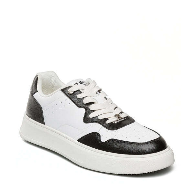Steve Madden Men's Black & White Jorgee Sneakers Simple yet chic, JORGEE has everything you could want. The versatile upper gives this sneaker a unique look, while remaining simple and chic. Upper material: leather Platform height: 3 cm Closure Type: Lace-