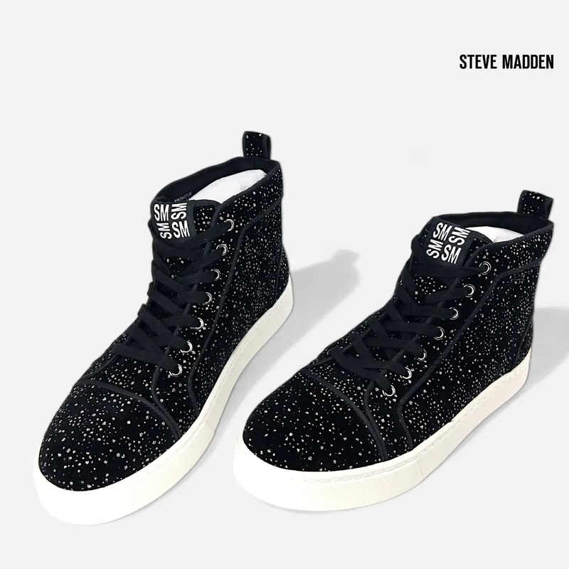 Steve Madden Unisex Black Glitter Promoter Fabric Ankle Streakers This is Steve Madden PROMOTER sneakers that allow you to stand out from the crowd with a unique and modern design. With their bold look and combination of high-quality materials, they combin