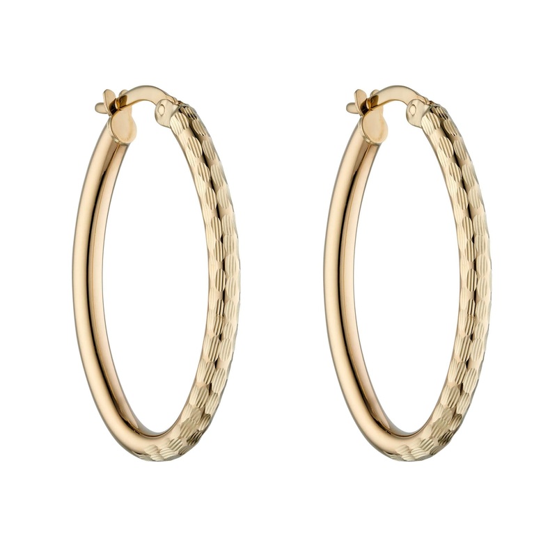 Textured 9ct Yellow Gold 25mm Hoop Earrings