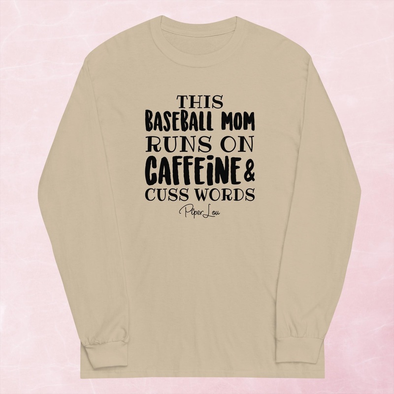 This Baseball Mom Runs On Caffeine And Cuss Words Graphic Long Sleeve Tee