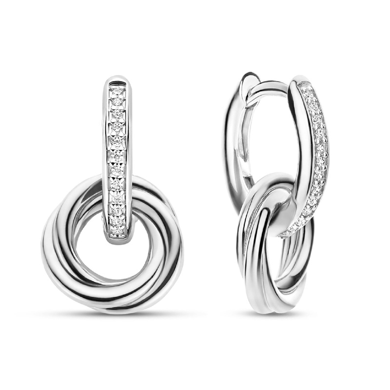 These TI SENTO – Milano silver earrings 7857ZI flaunt two elegant circles with twisted lines hanging from small hoops handset with a pav of cubic zirconia stones. These earrings are crafted from 925 sterling silver and coated with a layer of rhodium to protect them and keep them luminous. These timeless pieces will give a touch of edgy sophistication to your outfit.