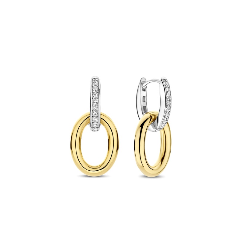 These TI SENTO Gold-Plated Silver Drop Earrings 78015ZY are a fresh take on timeless elegance, blending modern edge with effortless sophistication. Crafted from premium 925 sterling silver, these earrings feature a sleek, yellow gold-plated oval drop suspended from a pav-set cubic zirconia hoop, striking the perfect balance between bold and refined. The mixed-metal contrast adds a dynamic touch, making them a versatile statement piece. A fusion of strength and elegance, these interlinked designs celebrate the beauty of connection and fluidity. Designed to move with you, these earrings bring effortless chic to both daytime and evening looks. Nickel-free and hypoallergenic, they promise all-day comfort with a luxe finish. Whether paired with a power suit or a breezy summer dress, these gold-plated drops add a touch of understated glamour to any ensemble.
