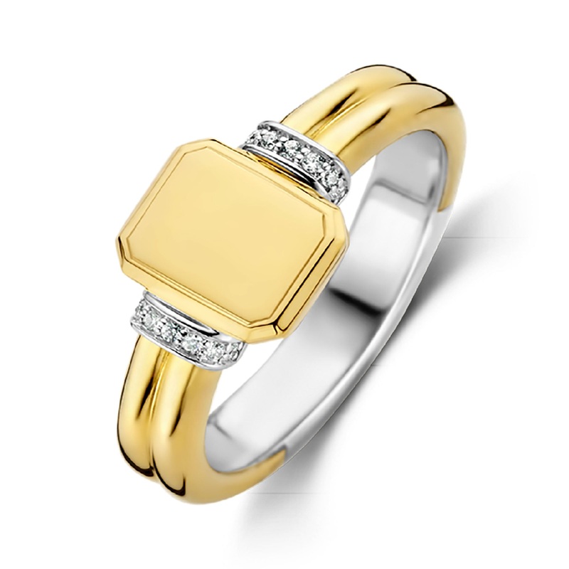 This TI SENTO – Milano gold-plated silver ring 12240ZY has an elegant rectangular centrepiece. Its shank is decorated with white cubic zirconia pav details on each side.