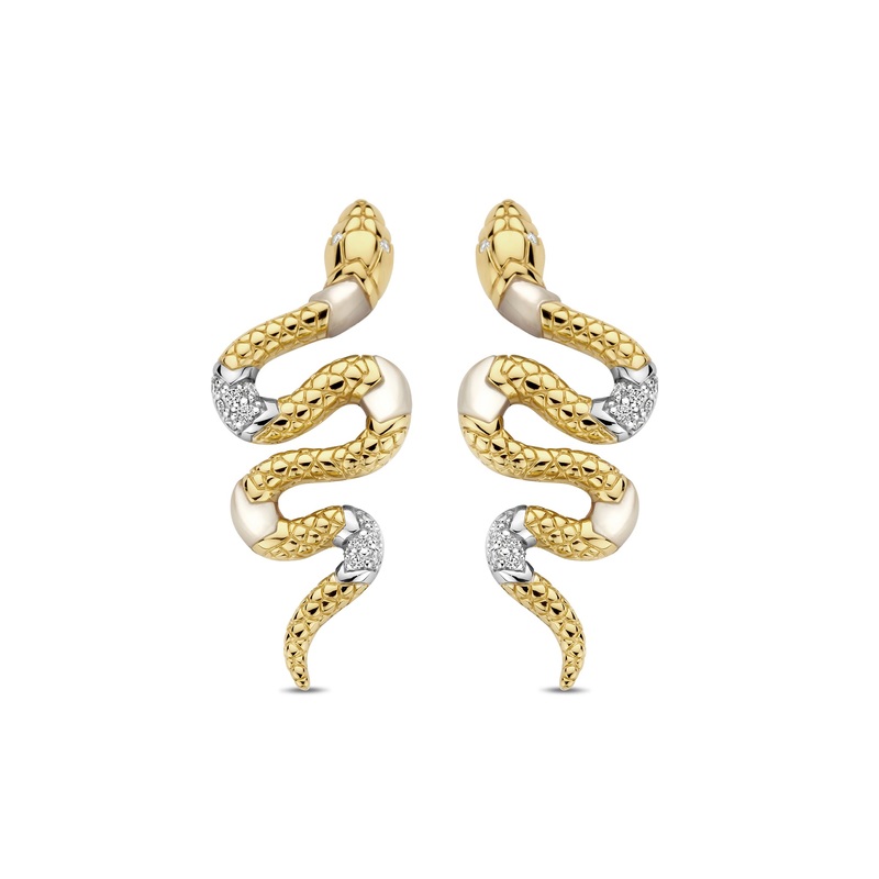 Indulge in a touch of playful elegance with these TI SENTO gold-plated silver Snake Earrings 7827MW. Crafted from 925 sterling silver and plated in radiant yellow gold, these earrings feature a captivating serpent design.