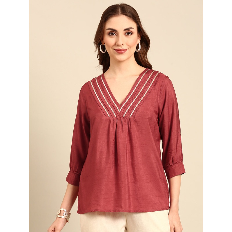Product Details: Elevate your ethnic wardrobe with this exquisite top from De Moza, where tradition meets modernity. Crafted from premium quality fabric, this ethnic wear top is designed to offer both comfort and style. SpecificationsFabric Composition: 10