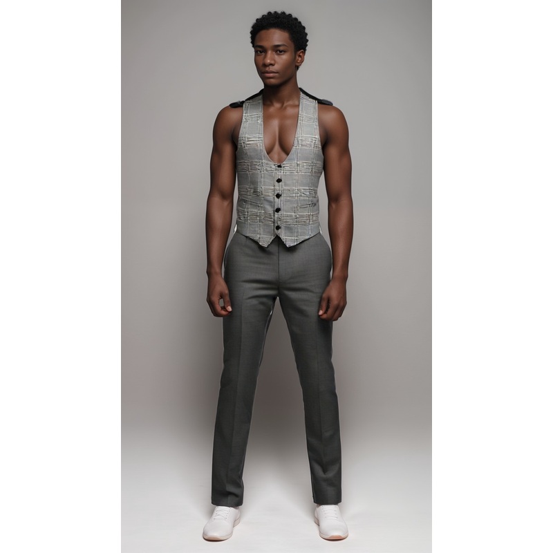 Topman Men's Multicolor Vest ANF1809 Suit Waistcoat In Grey House Check