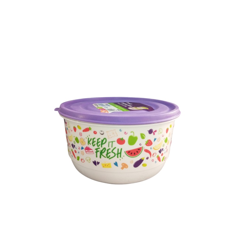 Ucsan Plastik Trendy Round Colored Elegant Food Saver With IML Design (2PCS) M-1431 Keeps durable healthy and fresh in long term 1L /1.8L White & Purple