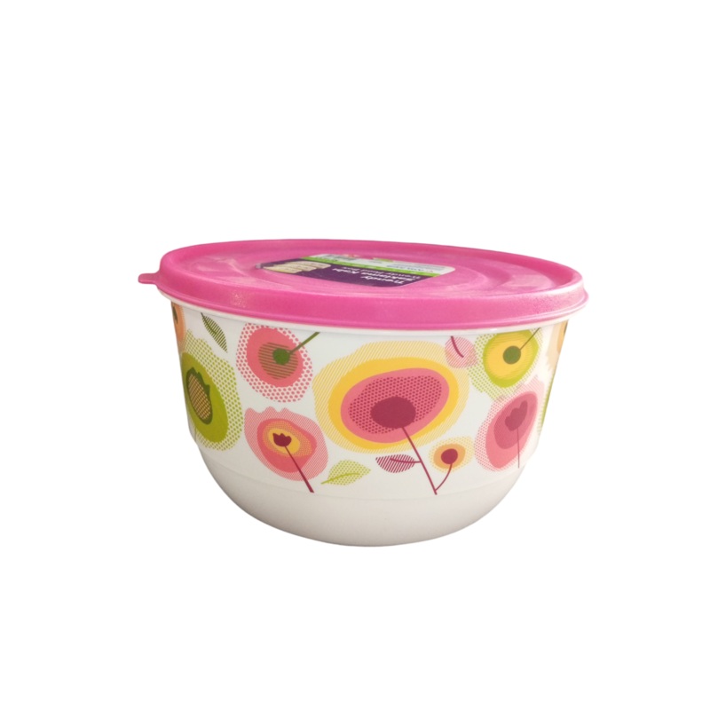 Ucsan Plastik Trendy Round Colored Elegant Food Saver With IML Design (3PCS) M-1433 Keeps durable healthy and fresh in long term 1L /1.8L/ 2.6L White & Pink