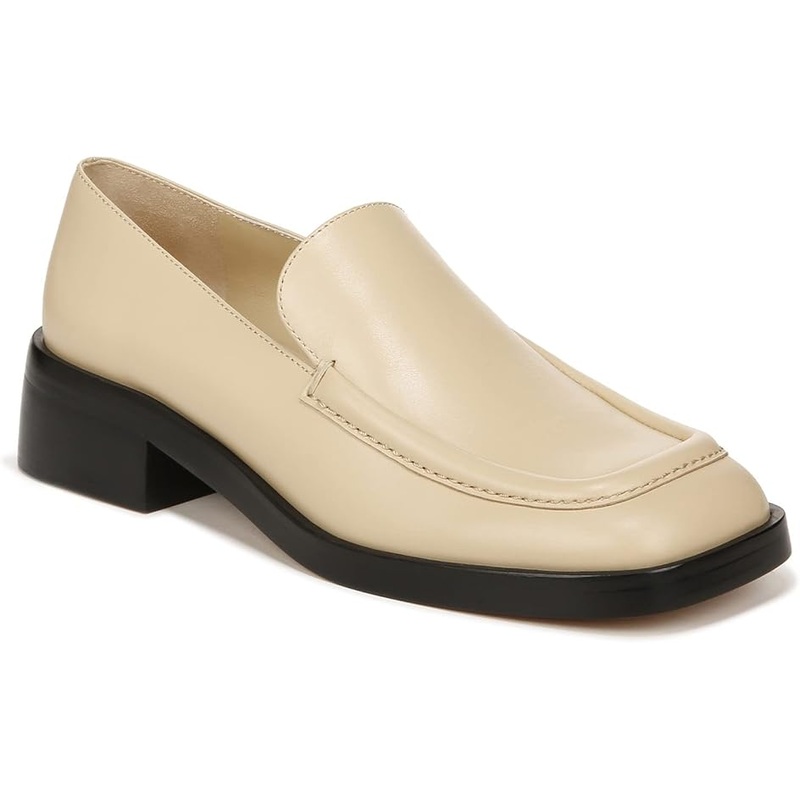 Vince Women's Beige Doris Block Heel Loafer Casual Shoes Sole material Rubber Outer material Leather Closure type Pull-On About this item Calf leather upper loafers for women Slip on styling for easy on/off Women's leather shoes with square moc toe Block h