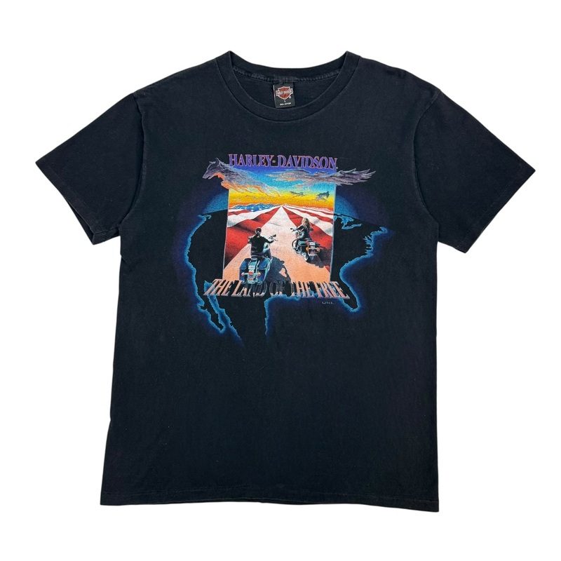 Vintage Harley Davidson The Land Of The Free Tee Black