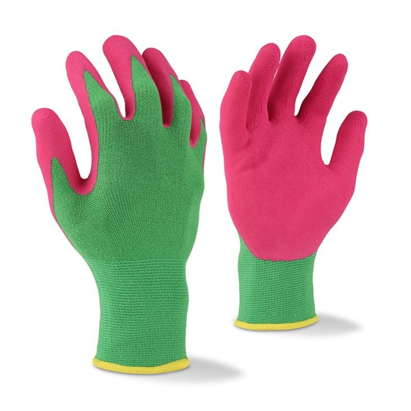 Vivess Green & Pink Gardening Gloves - 13 gauge bamboo + spandex high elastic shell.- Black foam latex anti-slip palm coating.- Seamless elastic knit wrist cuff.- Lightweight, high elasticity, excellent dexterity.