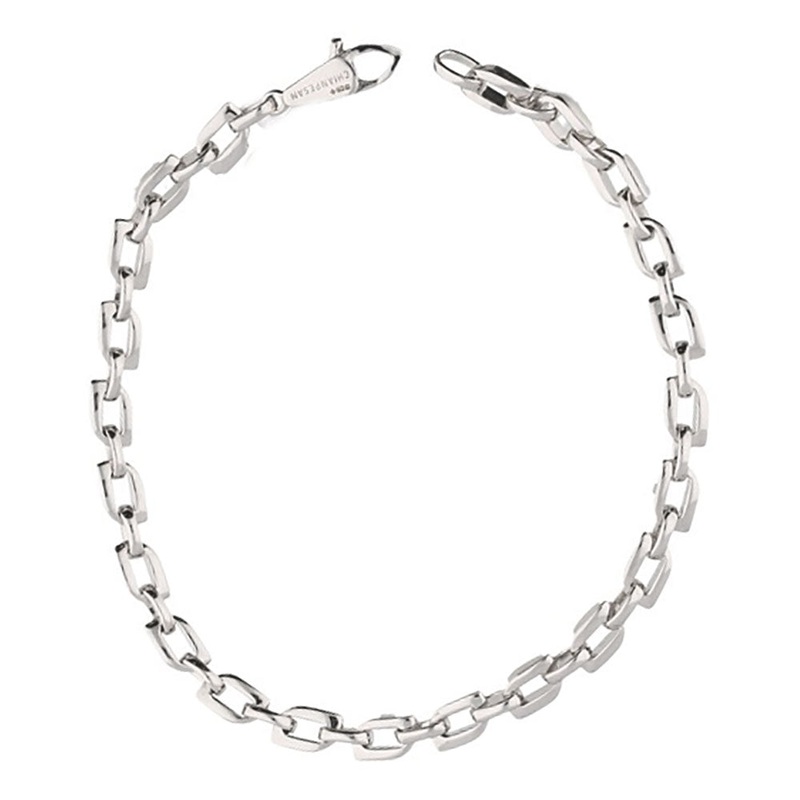 Necklace featuring a fancy oblong shaped links. Made from 18ct white gold.