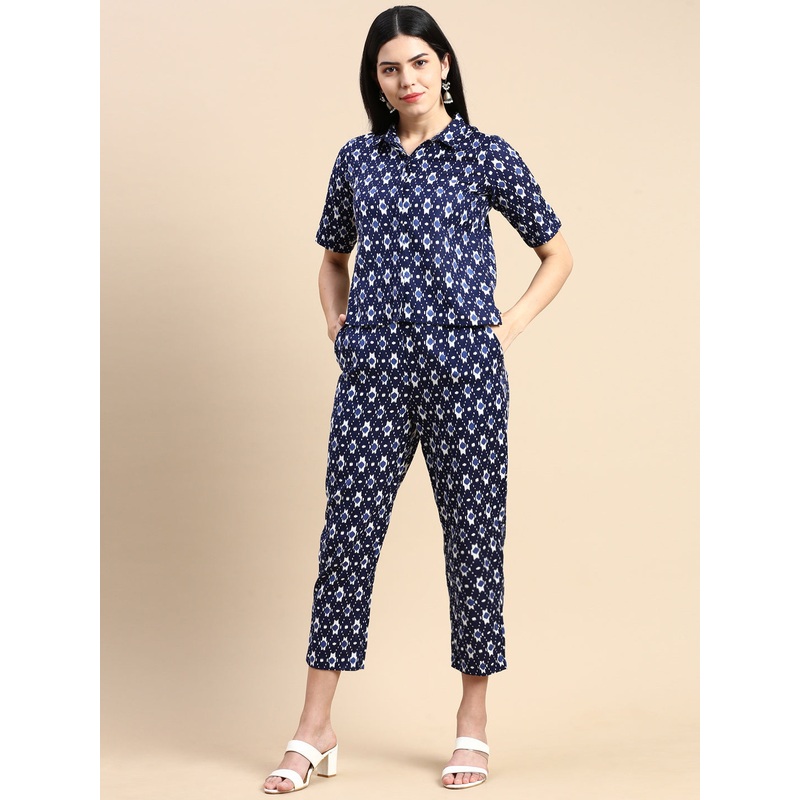 Design: PrintedMaterial: 100% CottonFabric: Woven BottomFit: Regular Fit with High RiseStyle: Versatile and TrendyOccasions: casual and semi-formal eventsElevate your wardrobe with De Moza Women Printed Cigarette Pant Indigo. Experience the perfect blend o