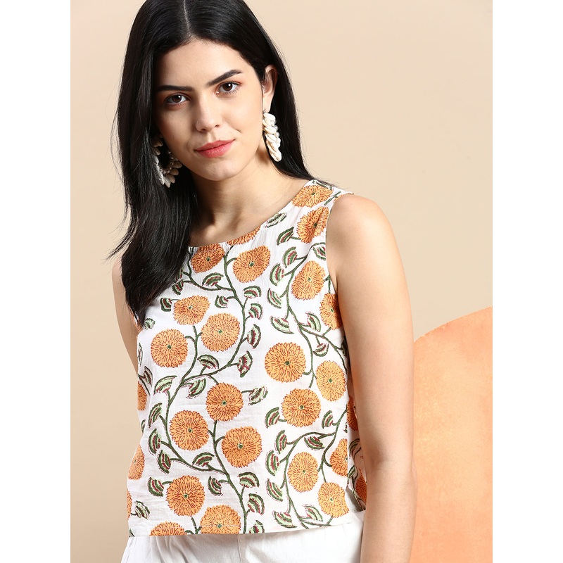 Design: All Over Print Fit: Regular Fit Material: 100% Cotton Type: Woven Crop Top Neck : Round Neck Features: Half Sleeves Discover the perfect blend of comfort and fashion withDe Moza Women Printed Crop Top White. Our collection is designed to make you l