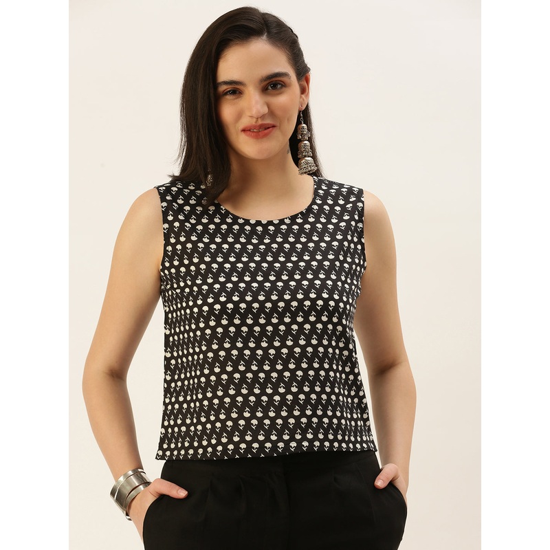 Women Printed Top Cotton Black