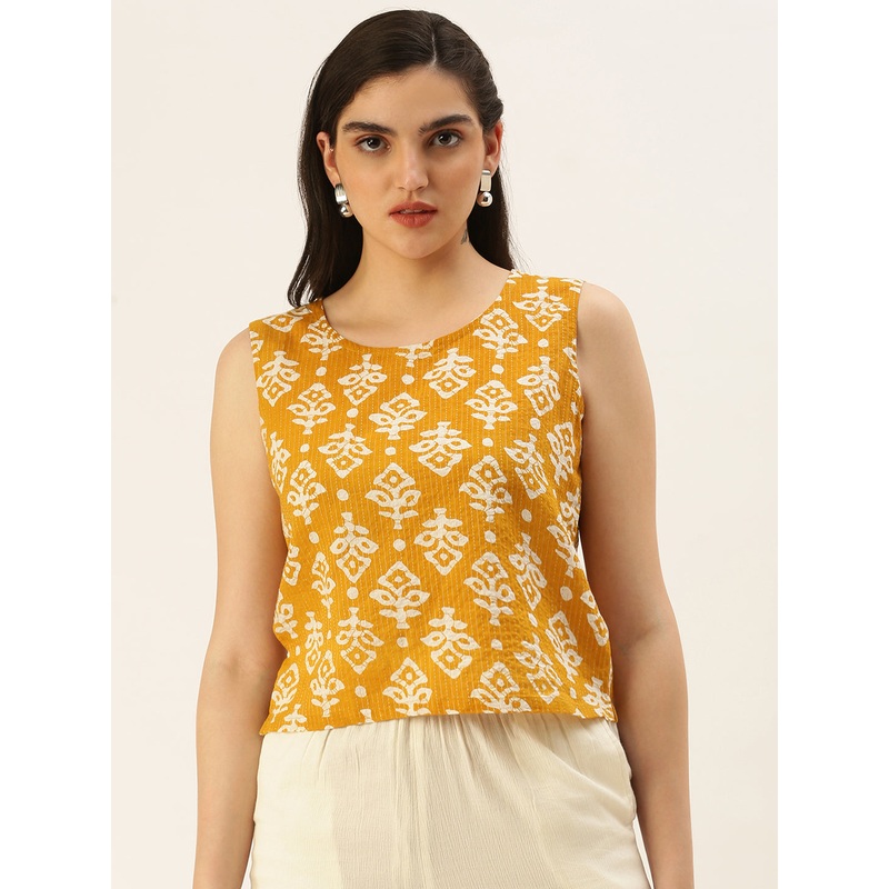 Women Printed Top Cotton Mustard