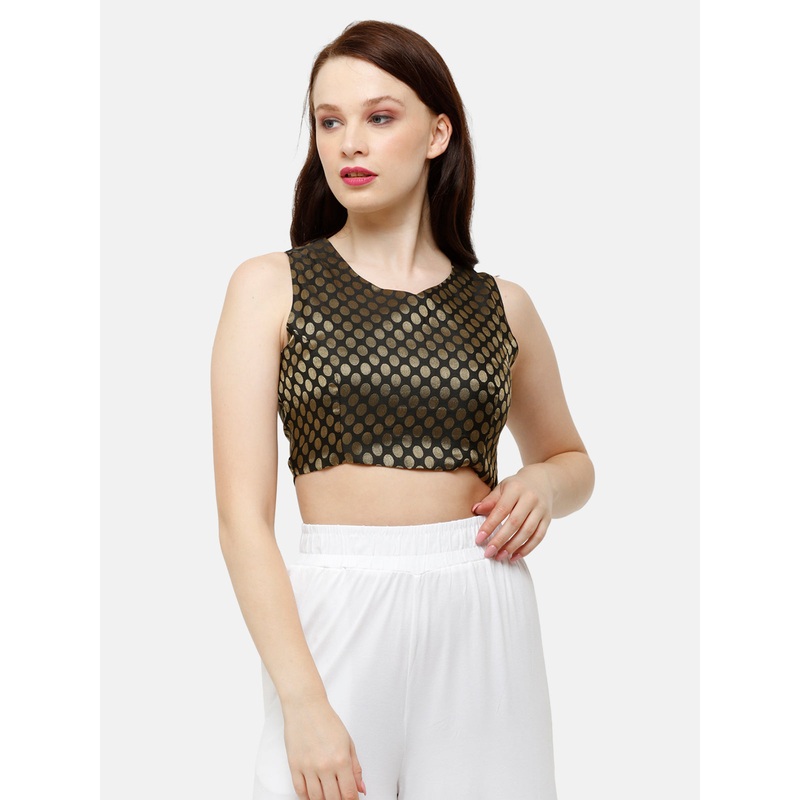 Women’s Ethinc Crop Top Jaquard Polyester Black
