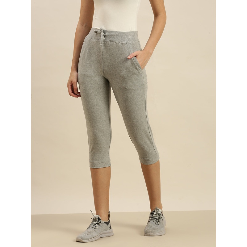 De Moza Women's Yoga Pant Grey Melange Pattern: Solid Rise: Mid Length: 3/4th Fit: Sporty Product Material: Cotton These style elements has elastics and draw string closure and includes multi-pocket styling. It is comfortable clothing designed to be suitab
