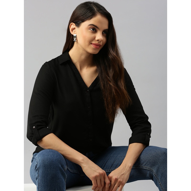 Design: Solid Fit: Regular Fit Material: Rayon Style: Woven Shirt Features: 3/4th Sleeves Collared Neck Discover the perfect blend of comfort and fashion with De Moza Women Shirt Black. Our collection is designed to make you look and feel your best, no mat