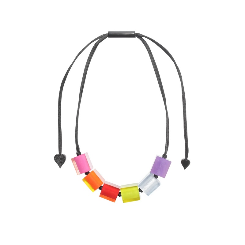 Add a pop of color to your outfit with the Zsiska - Colorful Cube Bead Necklace. Expertly crafted with bright and bold cube-shaped beads, this necklace is a statement piece that will elevate any look. Adjustable length Metal free Drop at longest length: ap